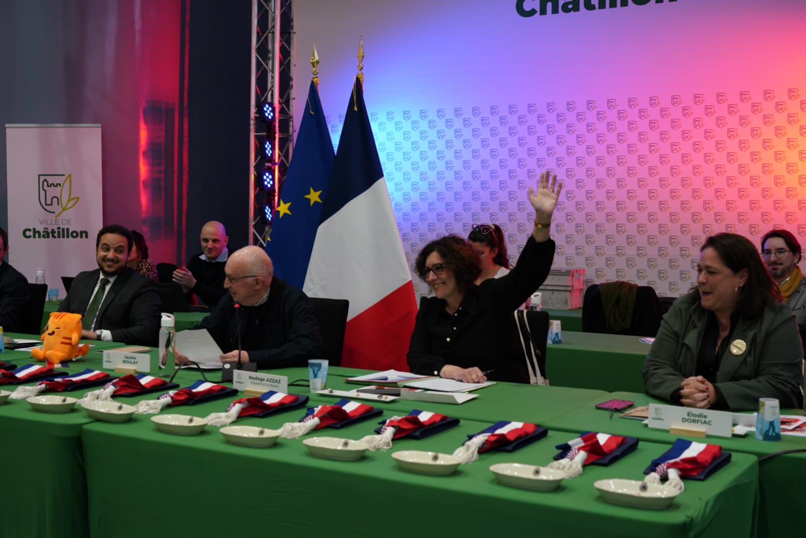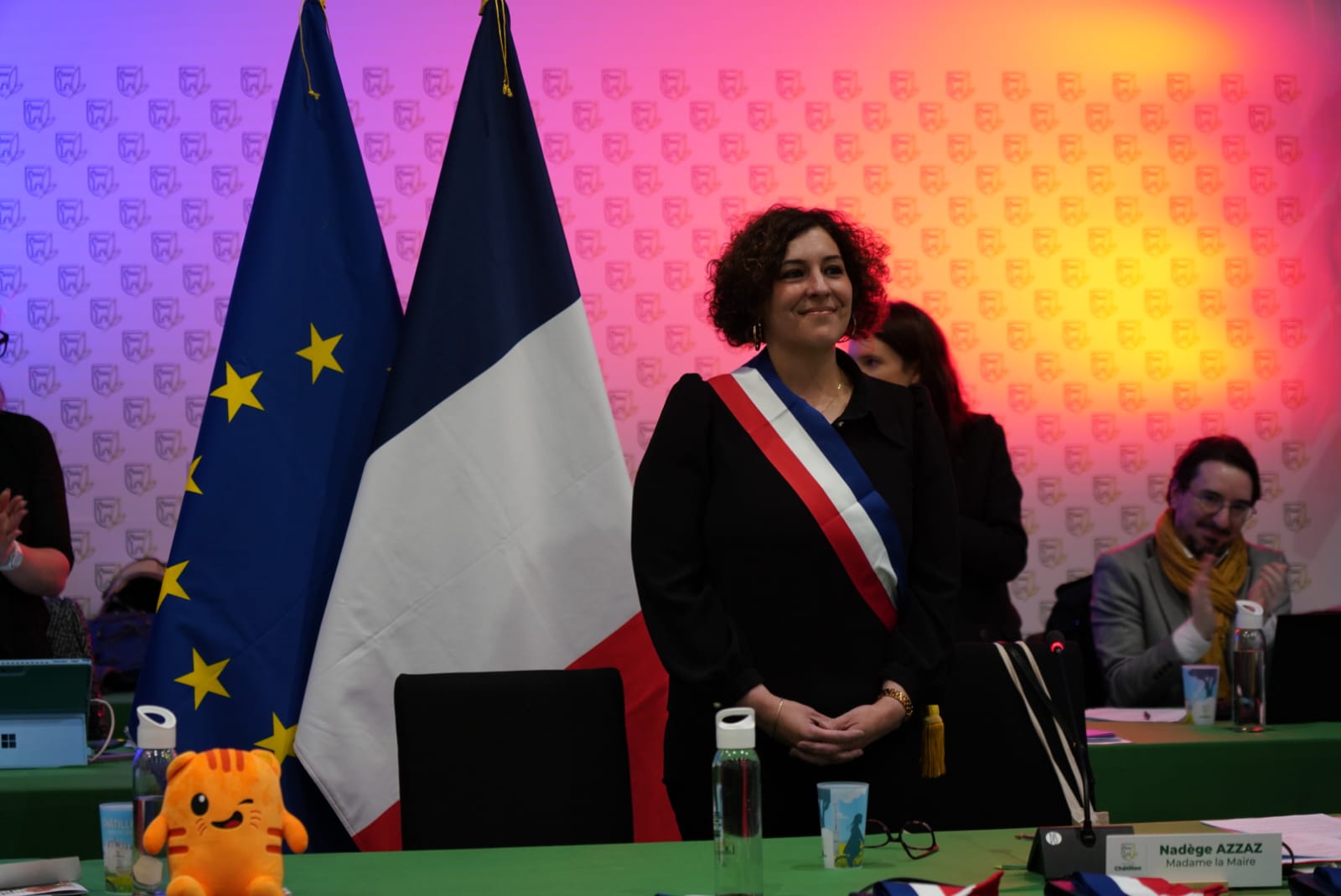 Nadège Azzaz, réélue Maire de Châtillon, lors de la séance d’installation. -