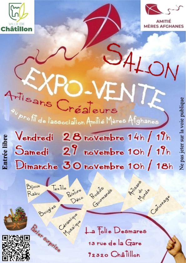 Vos achats permettront de financer les projets de l’association Amitié Mères Afghanes : Humanitaires, médicaux et éducatifs en Afghanistan où la situation des femmes est de plus en plus dramatique.
