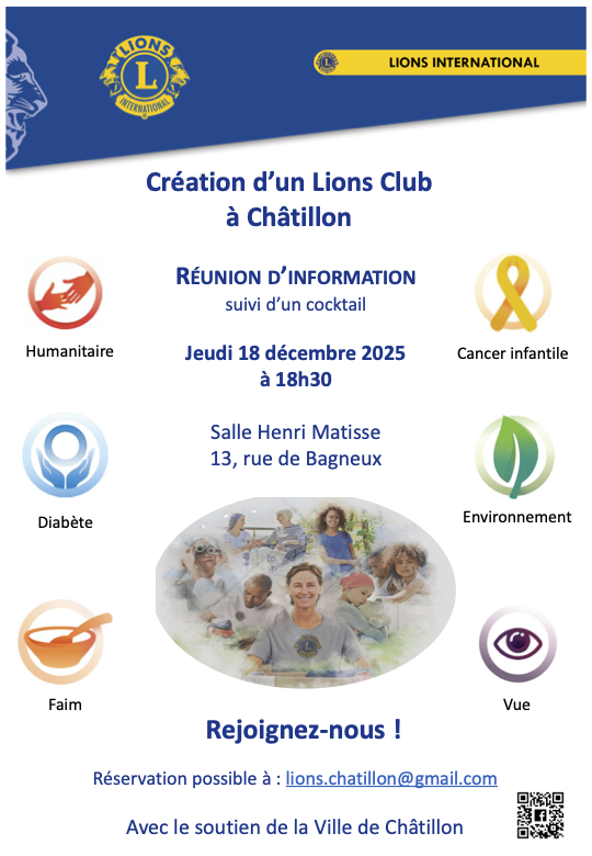 Le Lions Club organise une réunion d’information à Henri Matisse pour relancer son antenne à Châtillon.