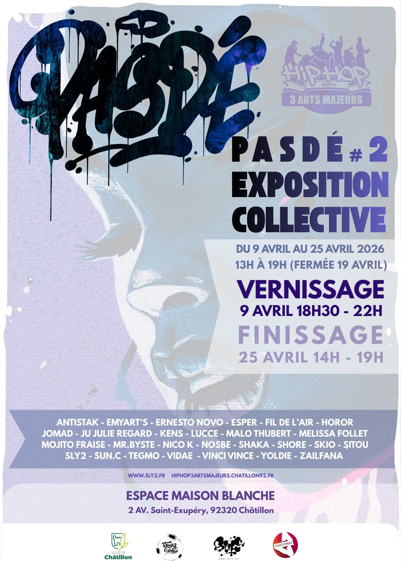 Pasdé est une exposition collective imaginée par Sly2, artiste illustrateur et graffeur depuis 1999, issue de la culture hip-hop et de ses valeurs fondatrices : partage, transmission et lien humain.